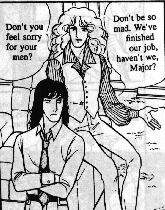 If this tease has intrigued you, I need to give you one warning: like many Japanese manga, particularly those aimed at young girls (!), this one contains homoerotic material. It's all talk, no action, but if the idea offends you, don't investigate any further. If you are intrigued rather than offended, click for more information on Eroica.