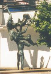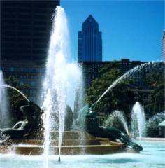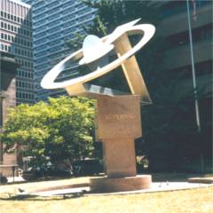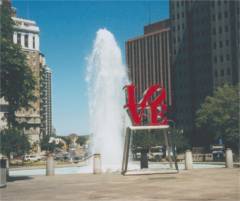 Fountain statue on Embassy Suites Hotel, and Friday's